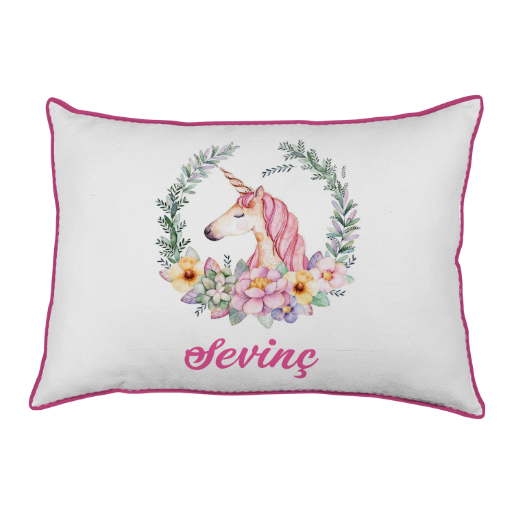 Kişiye Özel Kumaş Kız Bebek Yastık - ÇİÇEKLİ UNİCORN